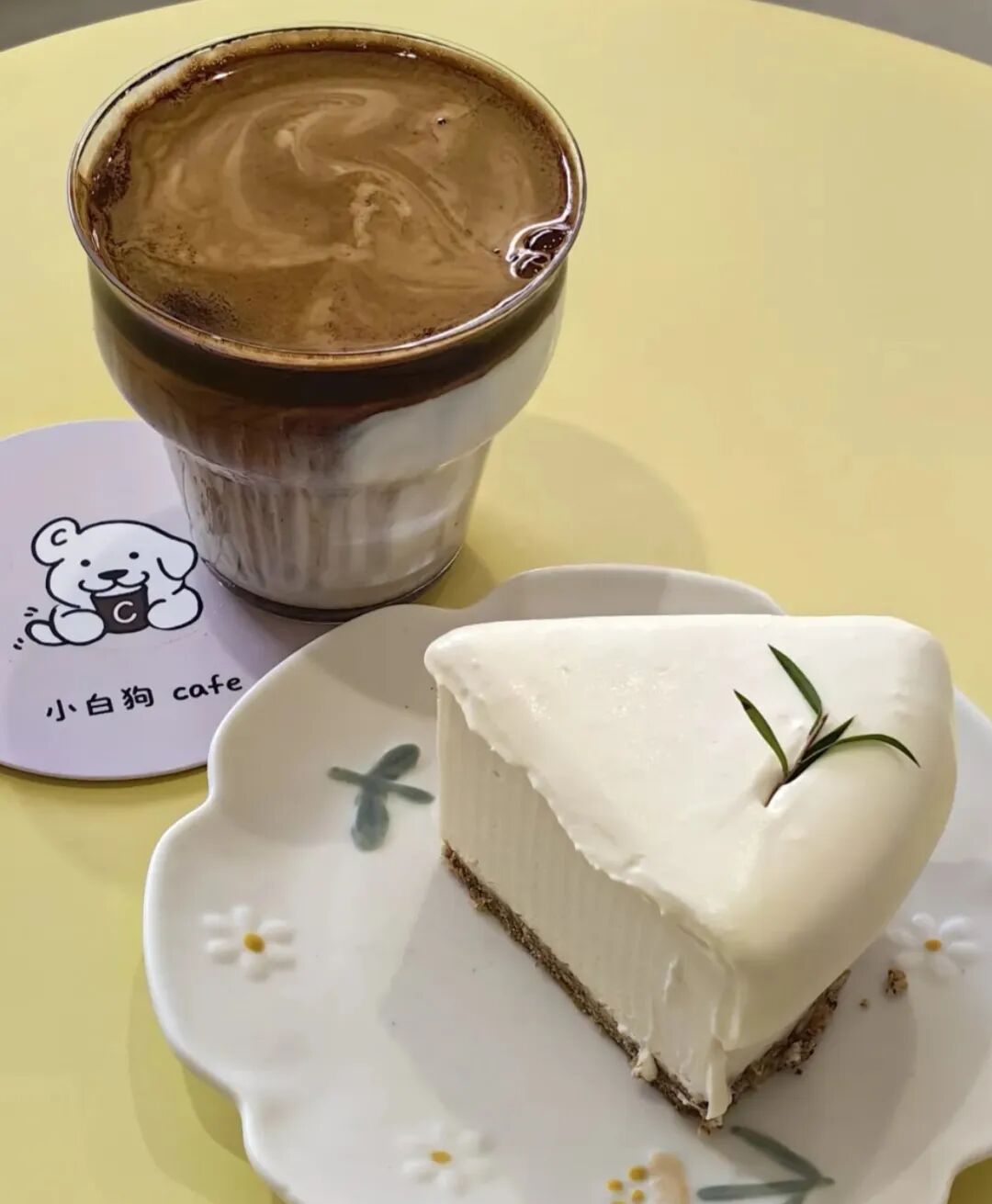 藏在社区街角的小白狗cafe,环境清新治愈,满是艺术氛围。店里的豆腐芝士巴斯克绵密醇厚,小白狗Dirty层次丰富,手冲咖啡香气纯粹,冰菠萝美式清爽解腻……超贴心的宠物友好小店惬意又治愈。