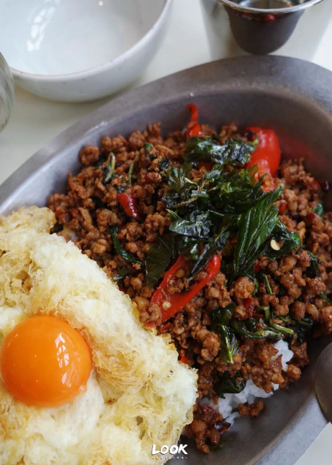 还有桌桌必点的打抛饭,大火爆炒激发出九层塔独有的鲜香,搭配特制煎蛋,先炸至蛋清焦香酥脆再铺上绵密蛋黄,拌入饭中入口,满口鲜香油润,越吃越上头,节假日客流较多,建议提前取号等位。免去久候的麻烦。