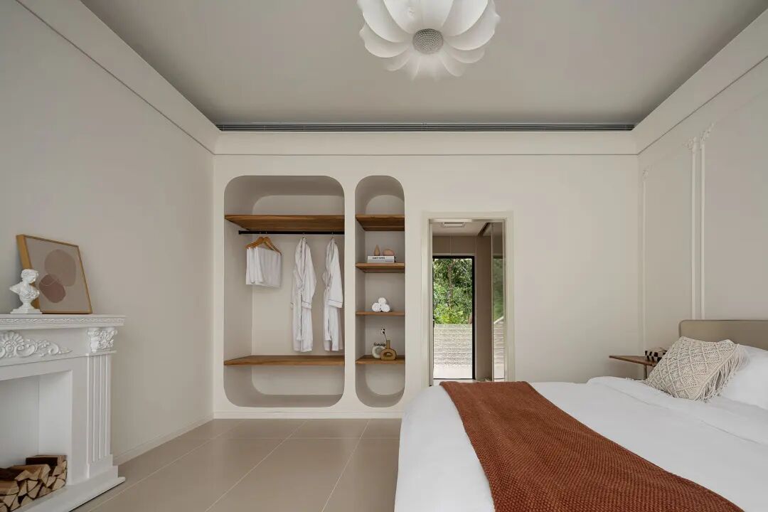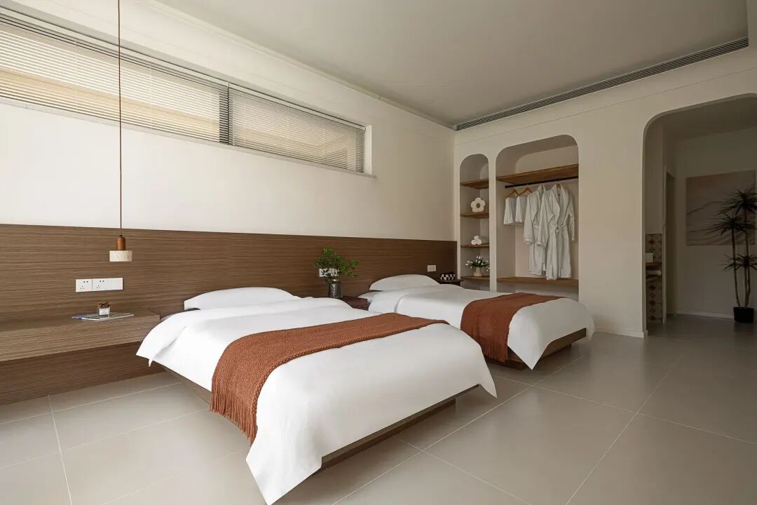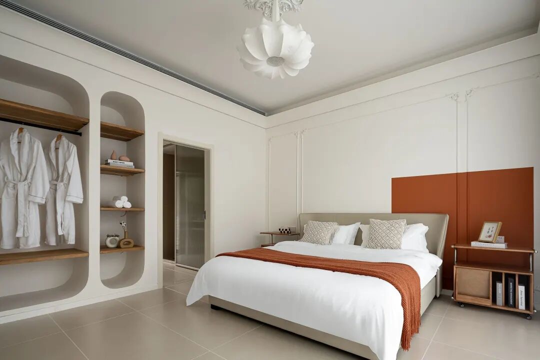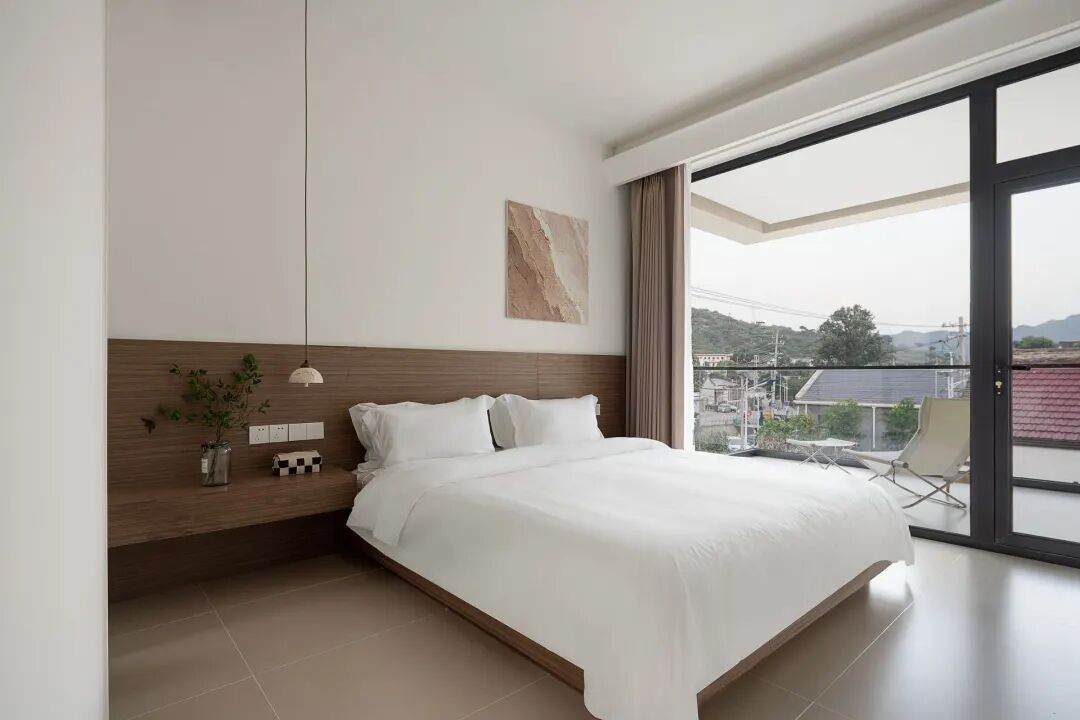 民宿主打简约清爽的设计风格,通体白净的装修,没有繁杂冗余的装饰,一进门就被通透干净的氛围包裹,连呼吸都变得轻快起来。