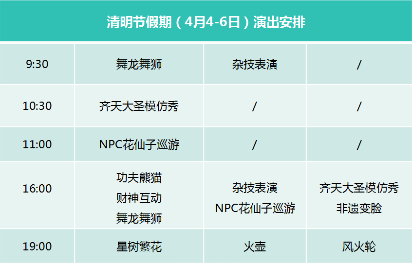 清明节期间,还将安排舞龙舞狮、踩高跷,星树繁花等特色表演,丰富游玩体验。