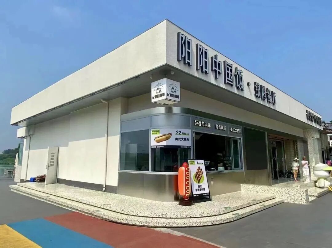 阳阳中国饭·银鸥餐厅是念坛公园内的连锁中式快餐,餐厅的白色外观与湖水和自然景观相互映衬,犹如一只临水而栖的银鸥。