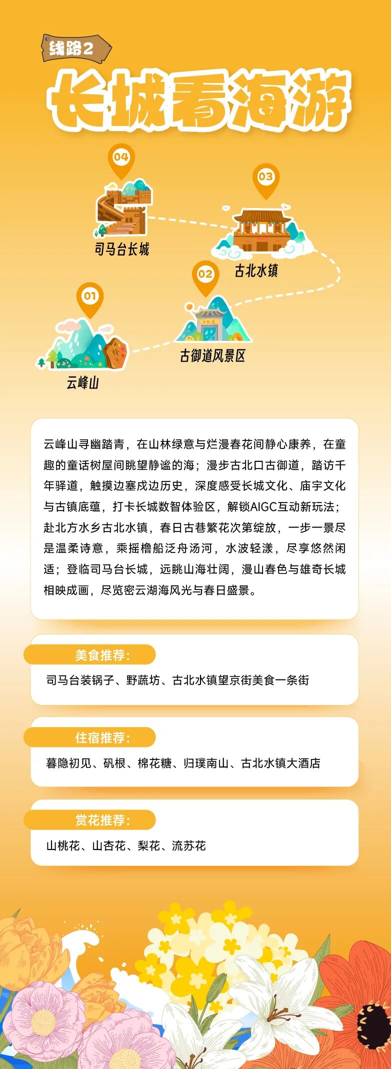 春日正好,山海皆可赴。这四条密云春季微度假线路,串联起山水、古韵、童趣与浪漫,配套优质美食与特色住宿,更有“来密云看海”打卡护照可享专属优惠。不妨收拾行囊,赴密云之约,打卡春日限定美景,与山海撞个满怀,定格属于这个春天的美好回忆。