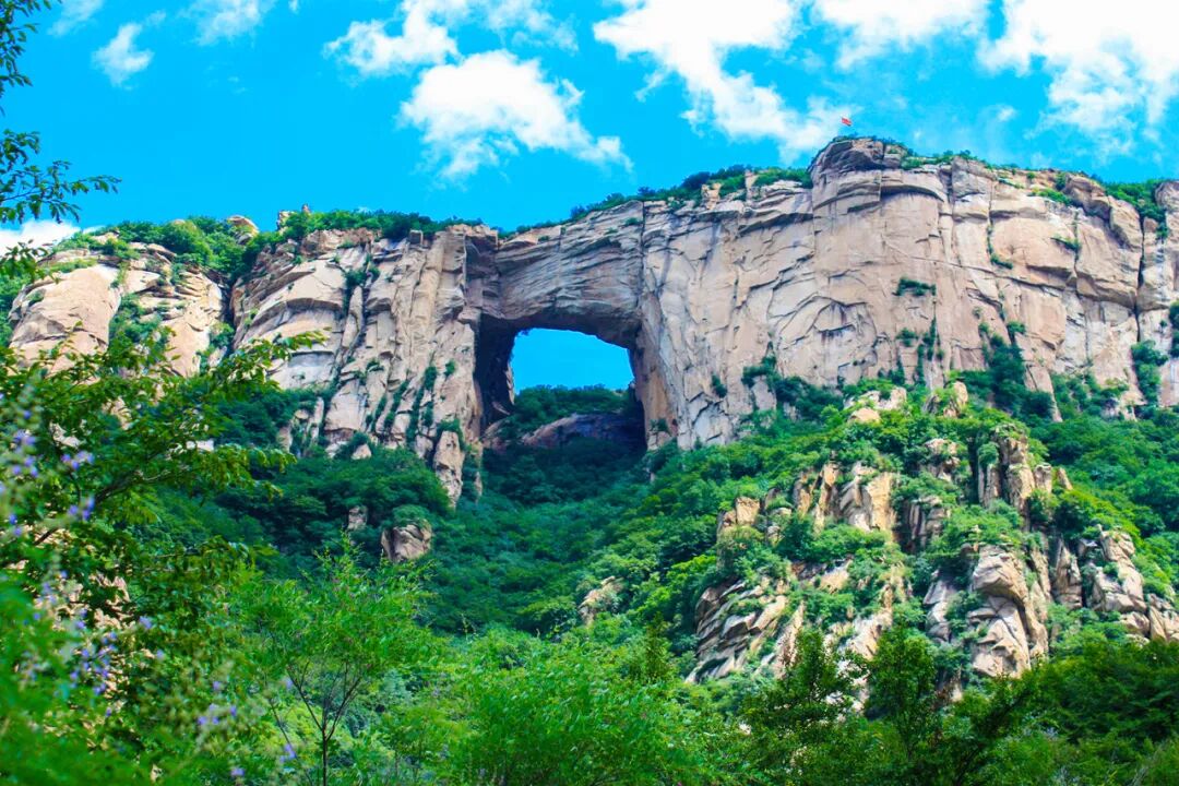 登顶天门山,打卡上亿年地质奇观天门洞,立于山巅俯瞰密云水库壮阔湖海,将山海花海、碧波万顷尽收眼底。