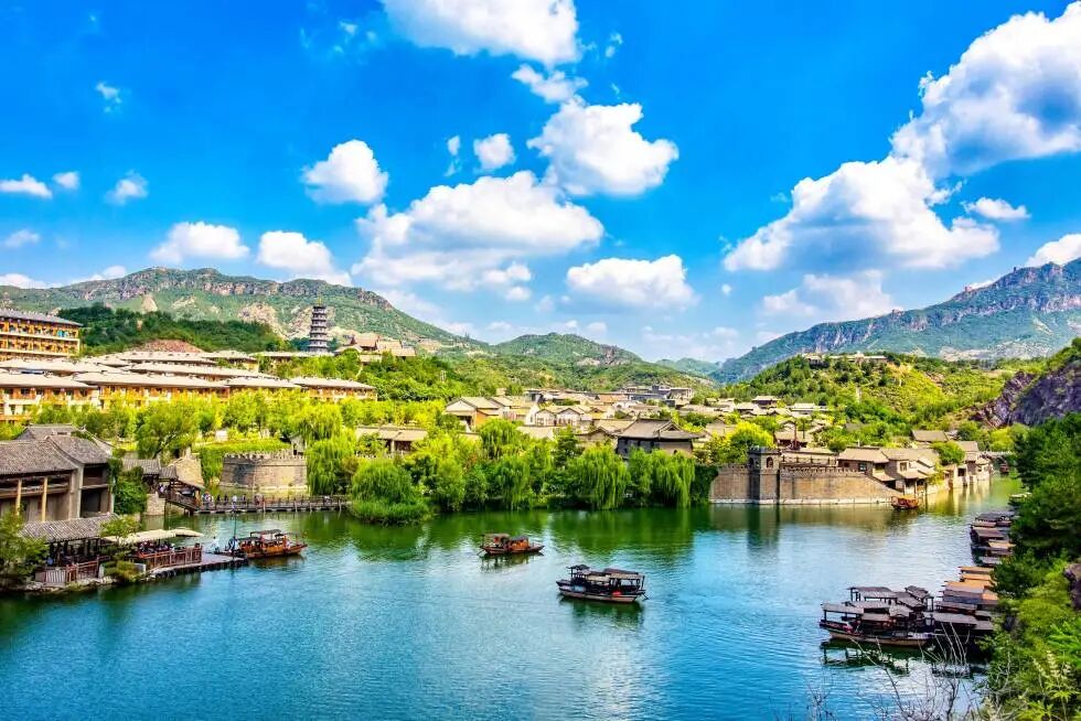 赴北方水乡古北水镇,春日古巷繁花次第绽放,一步一景尽是温柔诗意,乘摇橹船泛舟汤河,水波轻漾,尽享悠然闲适。
