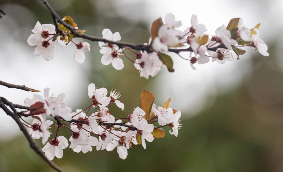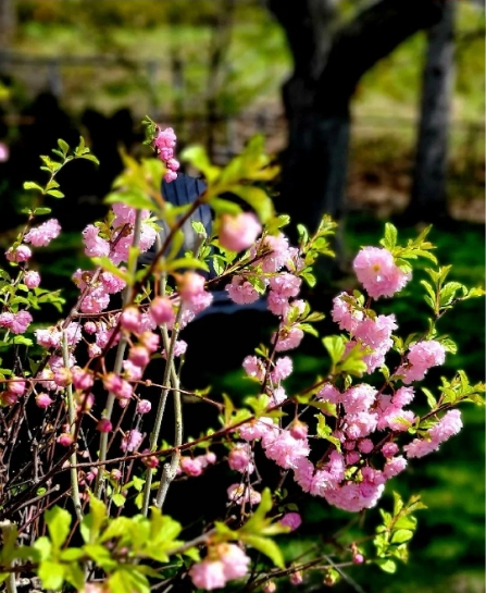 4月初至中旬:山桃花盛放(杏花坡)、榆叶梅(药王谷)、紫叶李(行龙谷)、海棠(公园主路)、迎春花(遍布全园)