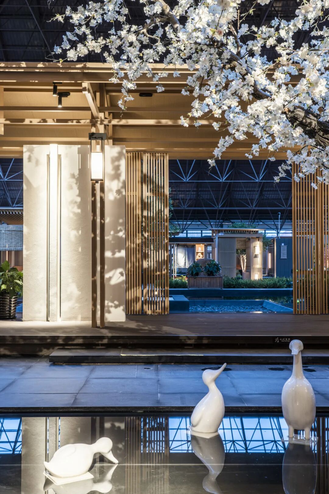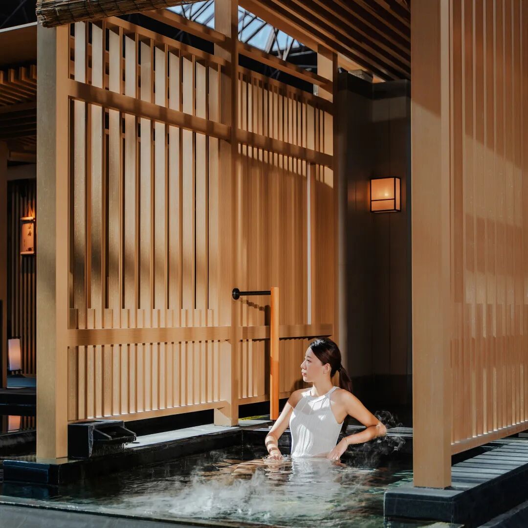 沐沄经营面积约12000平方米,配备有51个室内泡池,5个室外泡池、专属儿童戏水区、室内泳池及干湿蒸房等,沐沄以“东方禅风”概念融入整体空间设计,室内泡汤区配置以质朴、悠闲的村落形式,搭配庭院造景及简约的汤屋建筑风格,营造出慢活、养生、疗愈的空间情境。