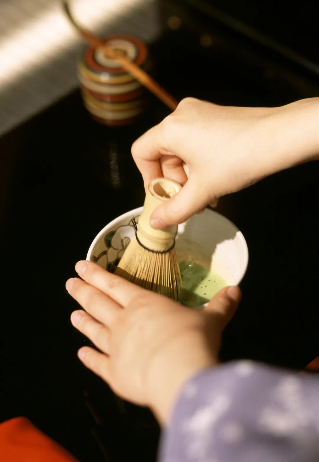 点茶是盛行于宋代的饮茶方式,通过汤瓶点冲,茶筅击拂形成丰富的沫浡,轻执茶筅勾勒千年风雅。