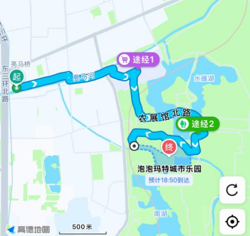 线路行程:亮马河国际风情水岸(游船)→SOLANA蓝色港湾→朝阳公园→泡泡玛特城市乐园