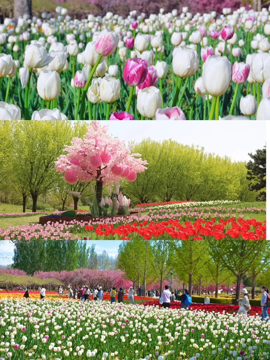 4月10日–4月25日园内郁金香达到颜值巅峰,近200万株郁金香齐开,樱花大道同步盛放,郁金香+樱花双景同框,春日氛围拉满~