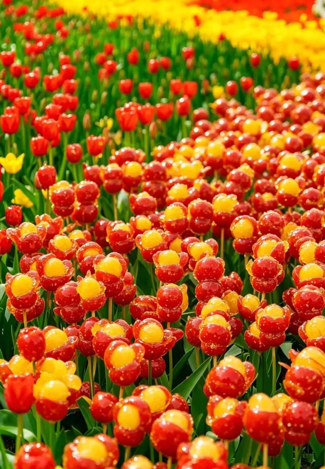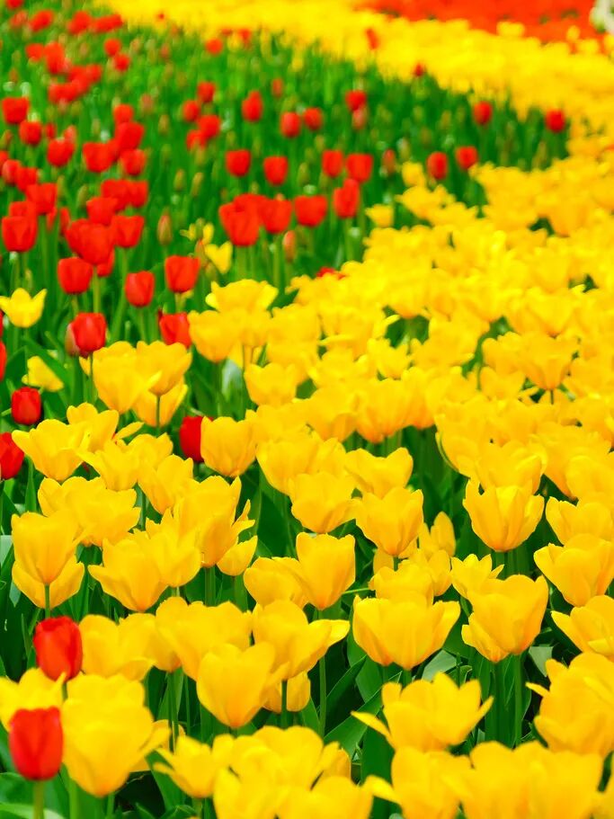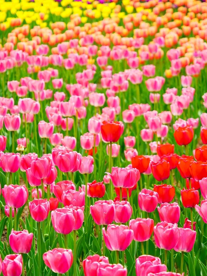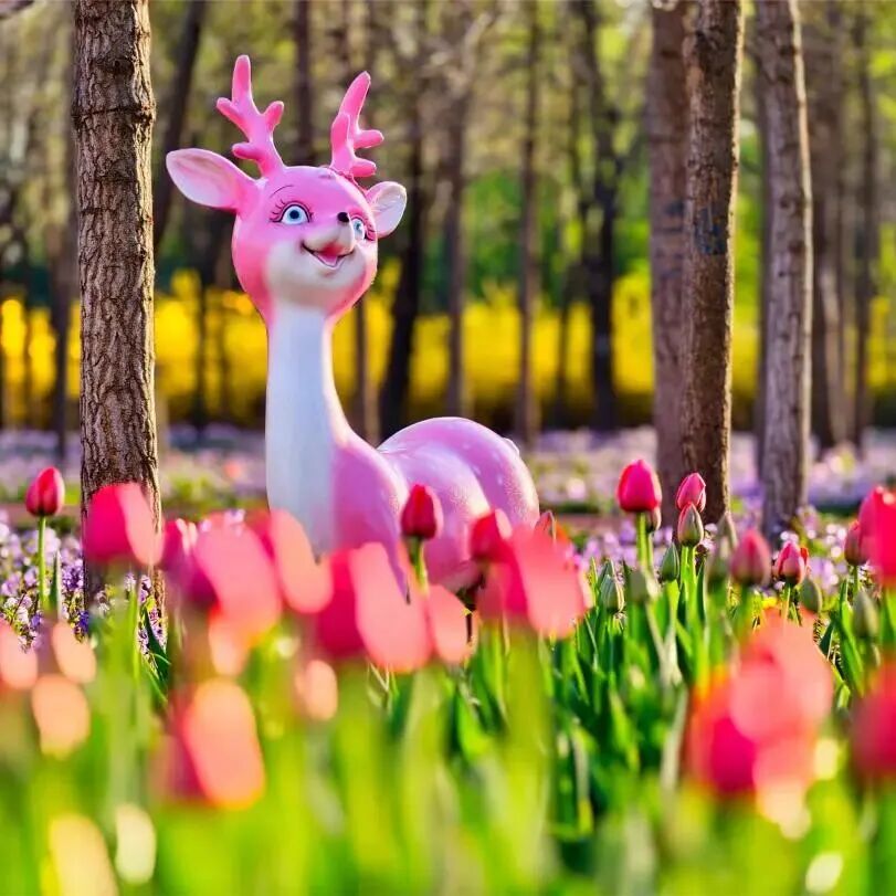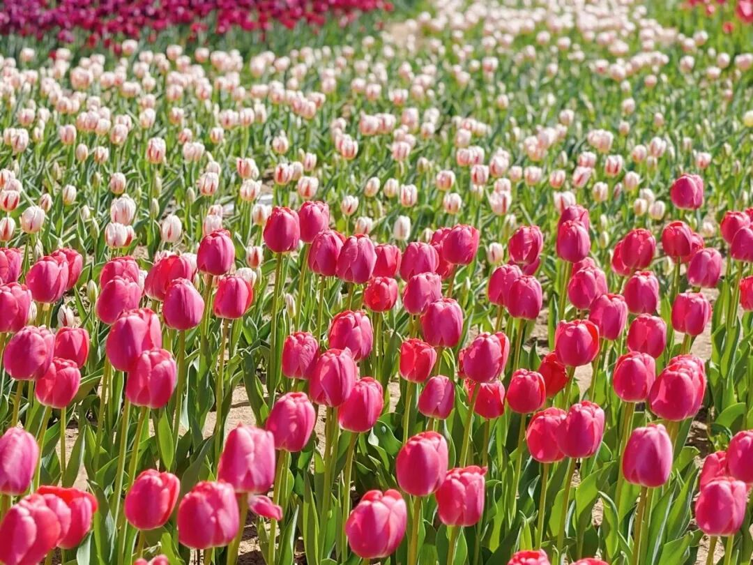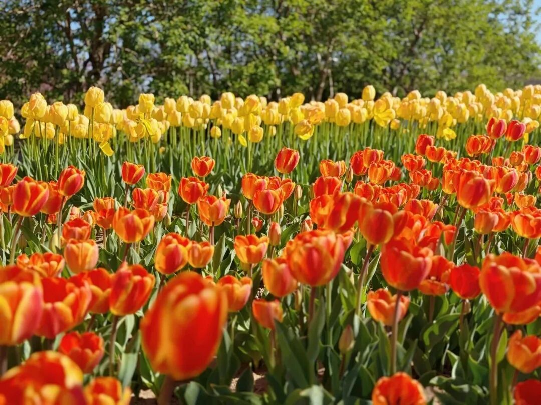 漫步花海之中,每一朵郁金香都像是精心雕琢的艺术品,红的似火,燃烧着春日的激情,粉的像霞,晕染出梦幻的温柔,黄的若金,闪耀着明媚的希望。