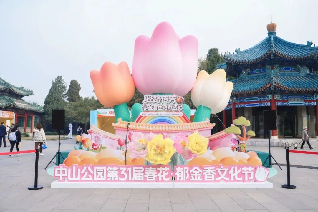 当前中山公园第31届春花·郁金香文化节“郁金香丝路奇遇记”游园活动正在进行中,市民游客在花海中品味春意之余,可在烟火市集中大快朵颐,在角色扮演中沉浸游园。