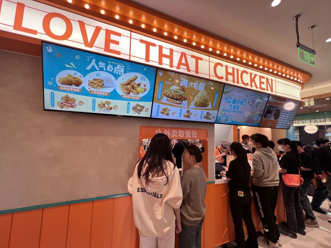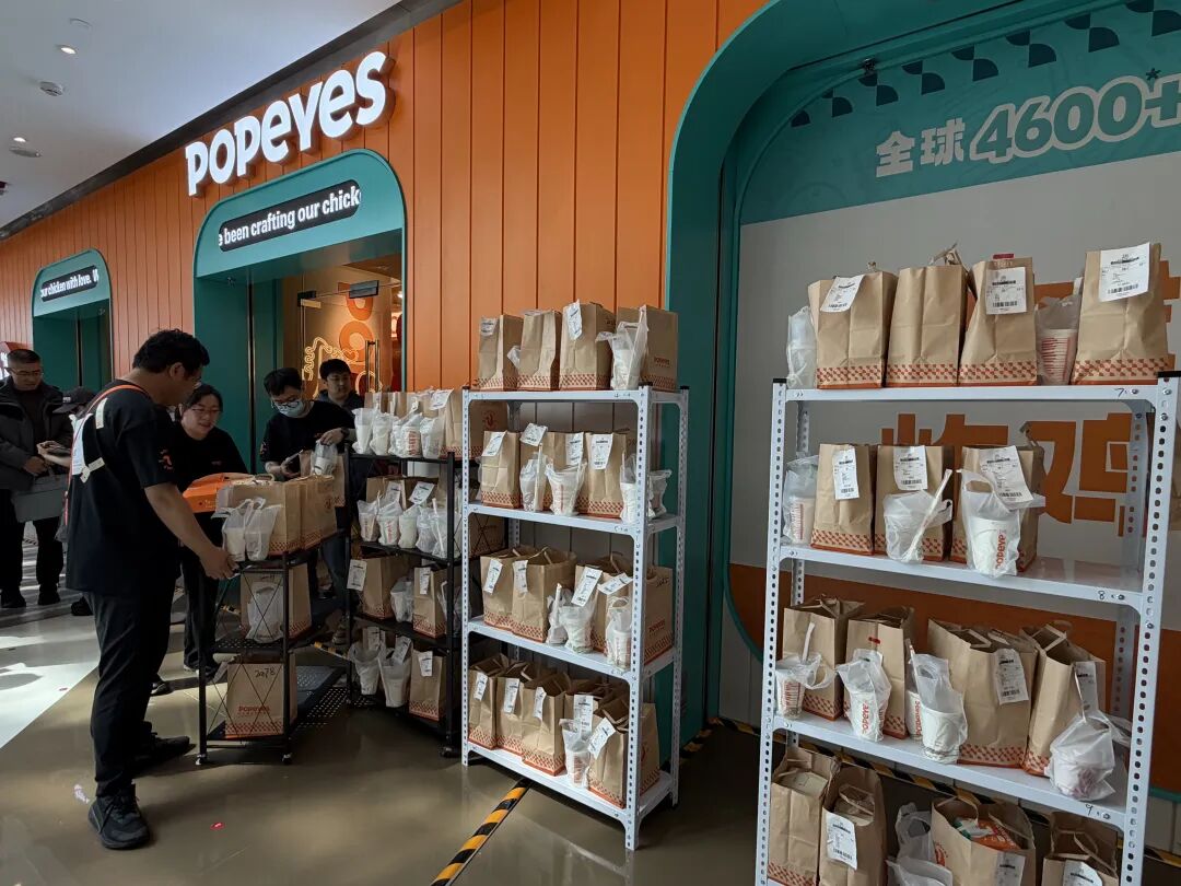 上午9时20分,距离开业还有40分钟,店门口已排起长队,一位顾客拿到排队号后发现已是80多号。他告诉记者,自己曾在美国上学,经常吃Popeyes,“得知东方新天地开了一家直营店,第一时间就来吃了。口味不错,刚开业期间有折扣,会常来。”记者在现场看到,开业仅半小时,小程序下单数即突破100单。