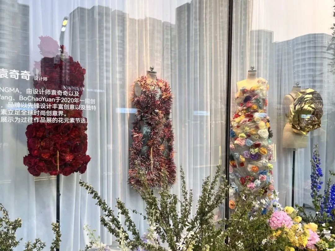 这场春日市集还深度联动了2026秋冬北京时装周的时尚资源。现场设有北京时装周限时橱窗,吸引了不少市民观赏。据介绍,橱窗内的服饰由青年设计师袁奇奇、朱恺怡设计,其中,袁奇奇设计的服装有红色玫瑰、彩色花卉点缀其中的裙装;朱恺怡的设计则更显民族风韵,珍珠、蕾丝、编织工艺均在服装上体现,让这些服饰看起来极具生命力。“逛商场之余,还能看到只有在秀场上才能看到的高定服装,过足了眼瘾!”市民胡女士兴奋地说。