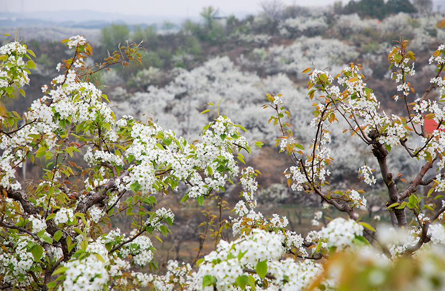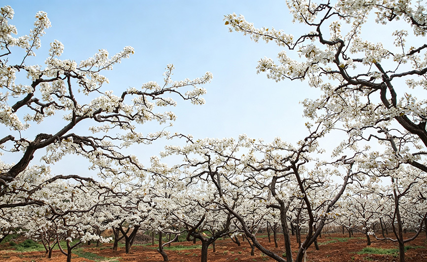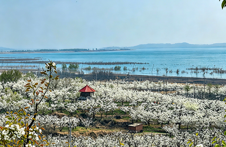 走进梨园,棵棵梨树苍劲古朴,虬曲的树干托起层层叠叠的洁白花瓣,微风拂过,香雪纷扬。“这种花海和水库同框的景色,在北京真的不多见。”从朝阳区专程赶来的王女士站在天文台路上,举着手机不停拍照。“我在媒体上看到了‘来密云看海’的推介,趁花期专程带家人来看看,景色果然名不虚传。”