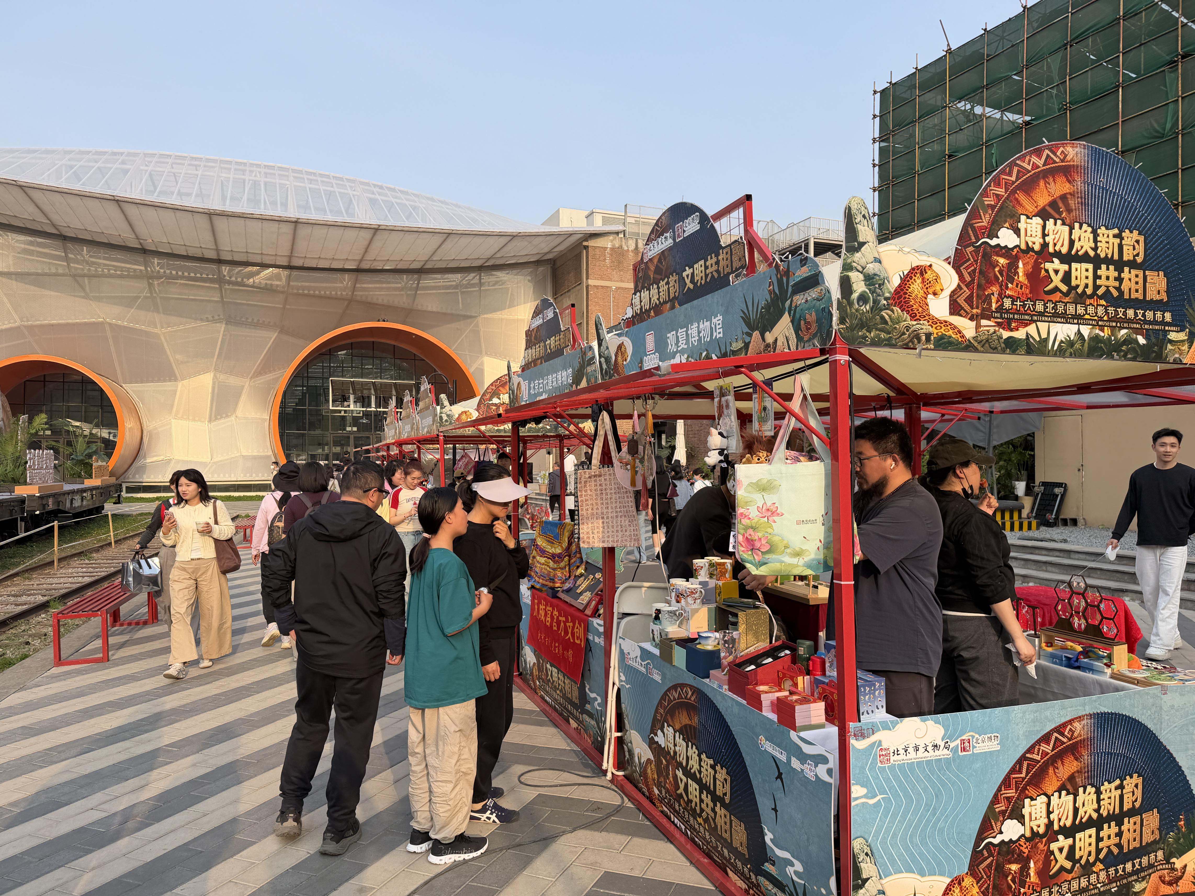 除了美食外,各类手作、文创摊位同样受到市民喜爱。“一站就能买齐中国艺术博物馆、孔庙和国子监博物馆、中国电影博物馆等各大博物馆的文创,太过瘾了。”喜爱收集冰箱贴的市民王女士一边向记者展示她买到的精美文创一边说。另一边,一个卖电影、动漫文创的摊位也挤满了人,电影《罗小黑战记》的T恤、动漫《鬼灭之刃》的徽章引得粉丝争相购买。