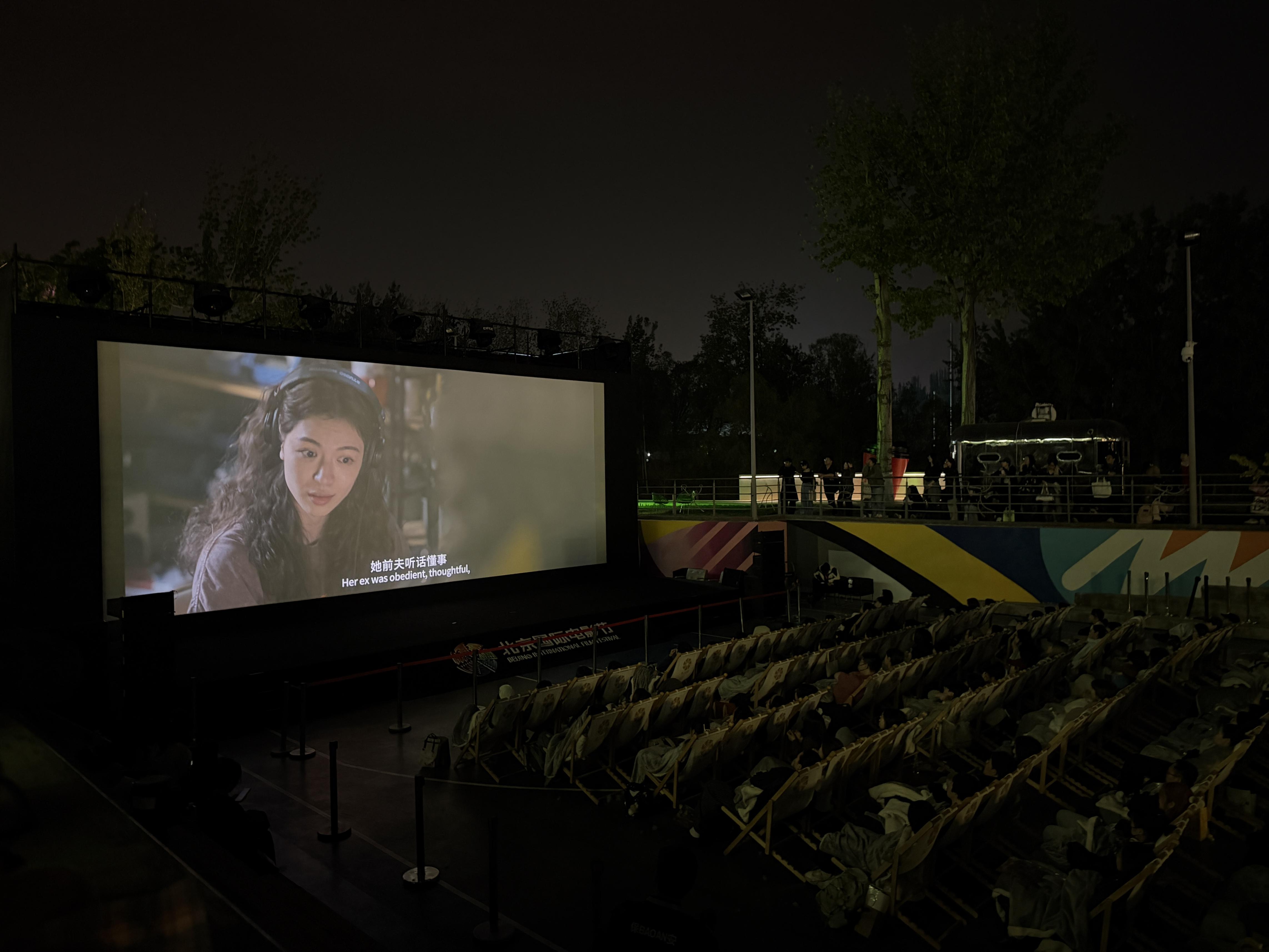 晚上七点半,坝河河畔泛起细碎波光,郎园Station的下沉篮球场被改造为了露天放映区,其中坐满了观影市民,晚来的市民或围在放映区旁席地而坐,或倚靠在花坛边沿,孩子们则坐在父母肩头好奇地张望。大屏幕上播放的正是2024年年底一经上映,便收获无数好评的电影《好东西》。“我非常喜欢这部电影,今天特地冲着邵艺辉导演的‘见面会’而来。”市民孙女士告诉记者,电影放映结束后,还有导演的映后交流活动,这个是影迷最期待的环节。