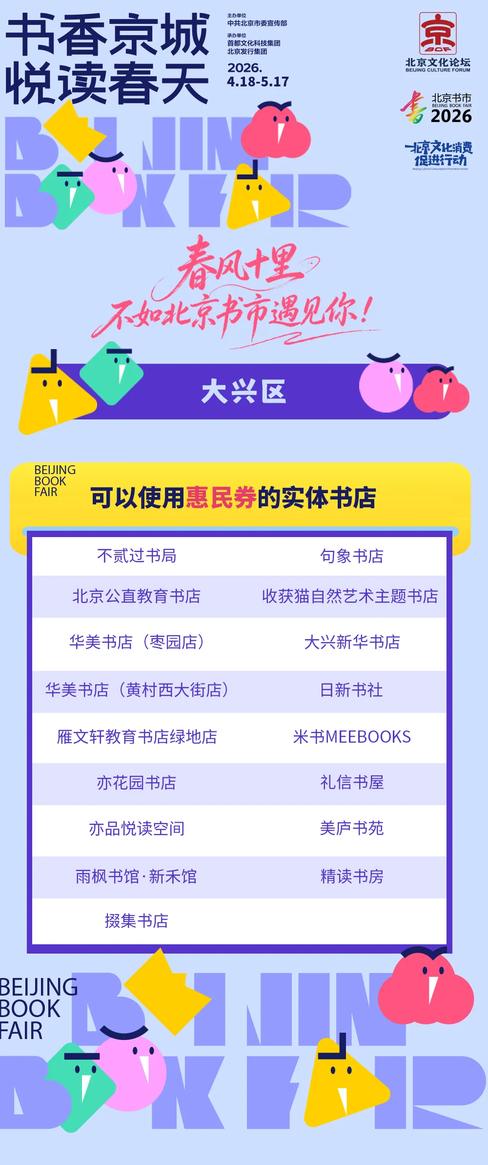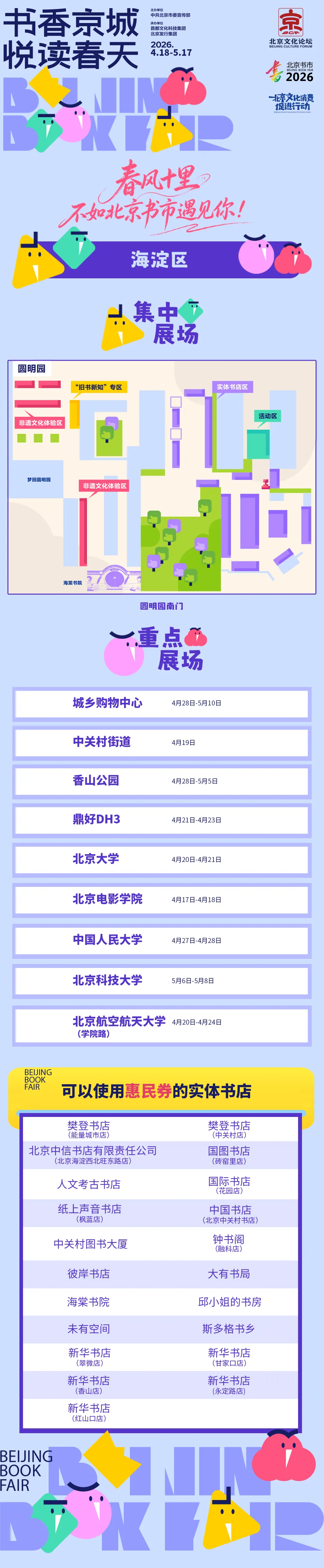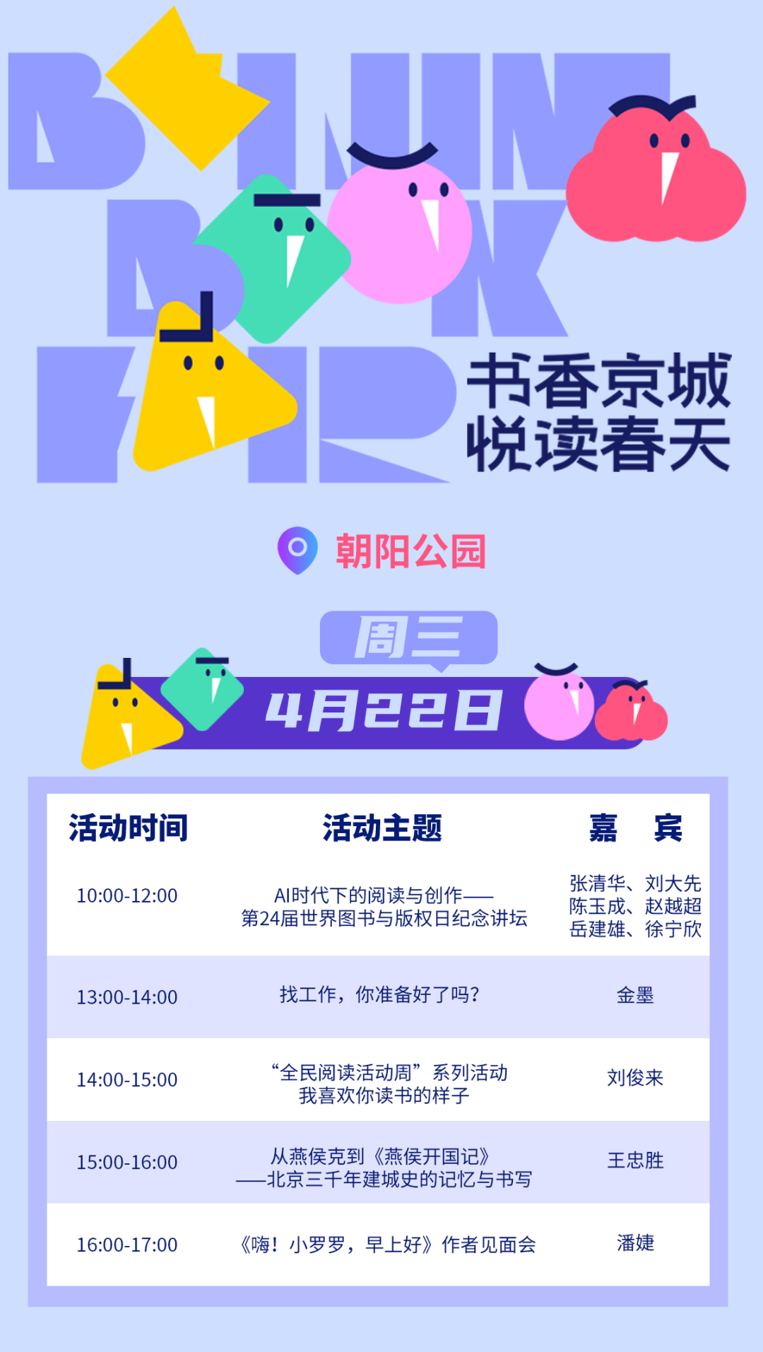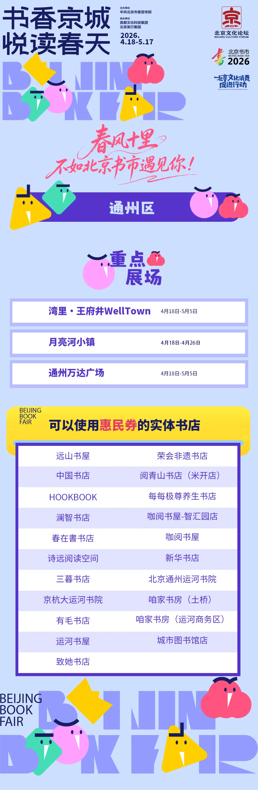 本次书市着力打造“悦读春天大讲堂”活动矩阵,将在朝阳公园、南苑森林湿地公园、首钢园、圆明园四大集中展场,以及隆福寺、钟鼓楼等北京文化地标和全市实体书店,举办超500场精彩活动,场次密集、覆盖范围更广,让书香从核心展场延伸至街头巷尾,全面提升读者参与度和获得感。