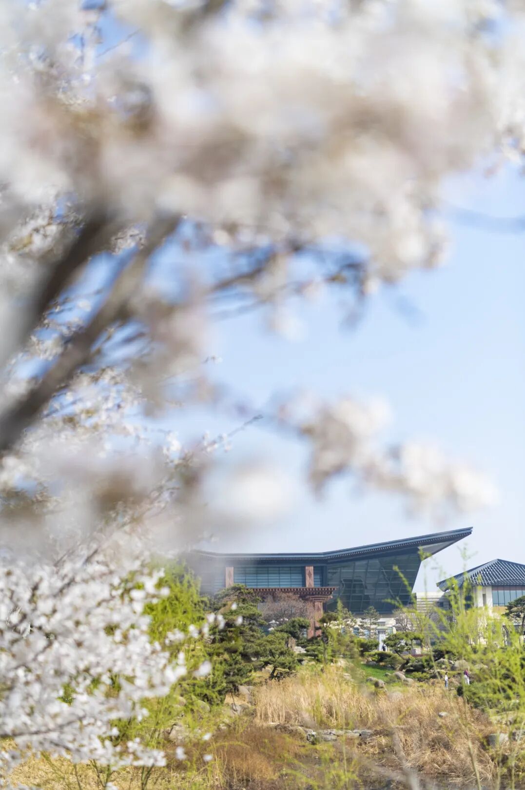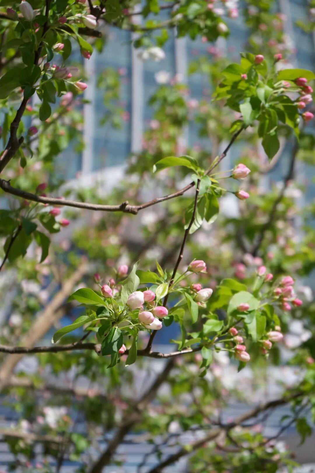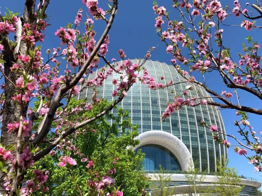 酒店正门两侧樱花、海棠竞相绽放,搭配“旭日东升”建筑流线型玻璃幕墙,随手一拍即是大片,网红地标打卡必选。