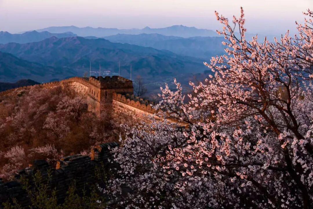 春日的长城更显雄伟,城墙两侧山花烂漫,可乘缆车直达敌楼感受“不到长城非好汉”的豪情。