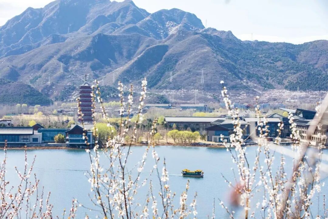 登雁栖岛,更觉春深似海,夏园曲径通幽、雁栖塔古韵悠然,雁栖湖国际会议中心建筑美学震撼,杏花林如云似雾,落英铺满青石板路。