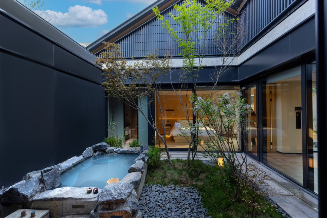 湾里一瓢以「运河底蕴+禅意留白」为设计核心,是2026年全新启幕的一瓢品牌第五店,也是品牌高端化里程碑之作,同年与小汤一瓢共同入围携程中国温泉泡汤酒店50强。酒店紧邻环球影城、汀云小镇,畅享一站式度假。内有7座独立庭院,43间房43个泡池各不相同,夜晚可枕星而泡。