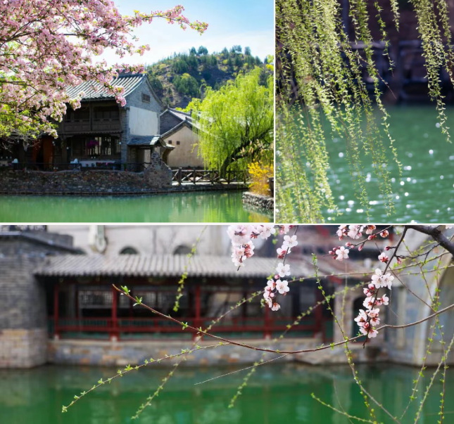 从长城脚下的古北水镇出发,明清及民国风格的山地合院错落分布,春日水镇繁花似锦,漫步其间,一步一景,皆是北方水乡的独特韵味。