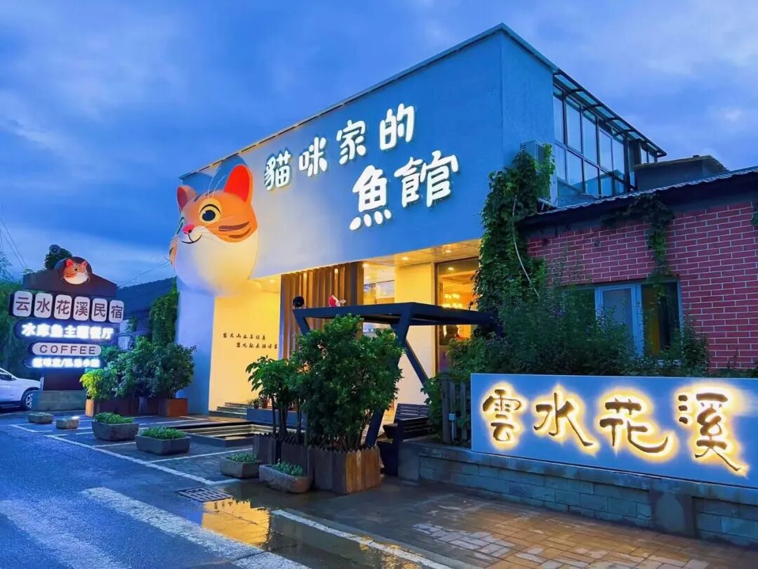 这是一家集民宿+餐厅的综合院落,中式庭院简约风,不仅有舒适的客房还有以密云水库鱼为主题的餐厅,集合了各种口味鱼的吃法,代表有麻辣鲜香的来凤鱼,酱香的秘制鲤鱼,鲜嫩的清蒸花鲢,酥脆的炸鱼串,以及烟火气十足的石城鱼糕火锅。