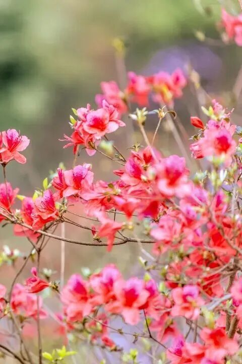 彼时开在山野的杜鹃花,风姿绰约,灿若云锦,姹紫嫣红的花朵簇拥在枝头,将青山点缀得格外鲜艳,登高望远,花海与山峦相融,漫山遍野似红霞铺展,满目皆是春意。