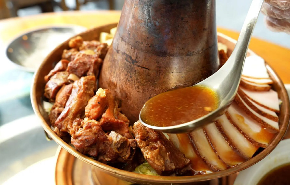 司马台长城脚下,流传着一道充满仪式感的佳肴——司马台装锅子,将五花肉、炸豆腐、炸丸子、干豆角、白菜、粉条等丰盛食材,一层层精心码放在传统大锅中,加入秘制高汤慢炖,随着热气升腾,食材的滋味相互交融渗透,汤汁愈发浓郁醇厚,这一锅沸腾的鲜美与热闹,是长城脚下独特的风味符号。