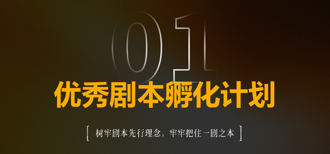 优秀剧本孵化计划 树立剧本先行理念,牢牢把住“一剧之本”,持续创作产出优秀剧本,为二度创作打下坚实基础。