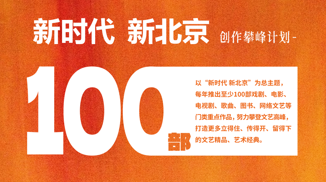 该计划以“新时代 新北京”为总主题,聚焦新时代首都发展、弘扬中华优秀传统文化和重大时间节点等主题,统筹规划、精准谋划创作选题,集中优质资源,提高组织化程度,加大扶持力度,完善全流程服务保障,每年推出至少100部戏剧、电影、电视剧、歌曲、图书、网络文艺等门类重点作品,努力攀登文艺高峰,打造更多立得住、传得开、留得下的文艺精品、艺术经典。