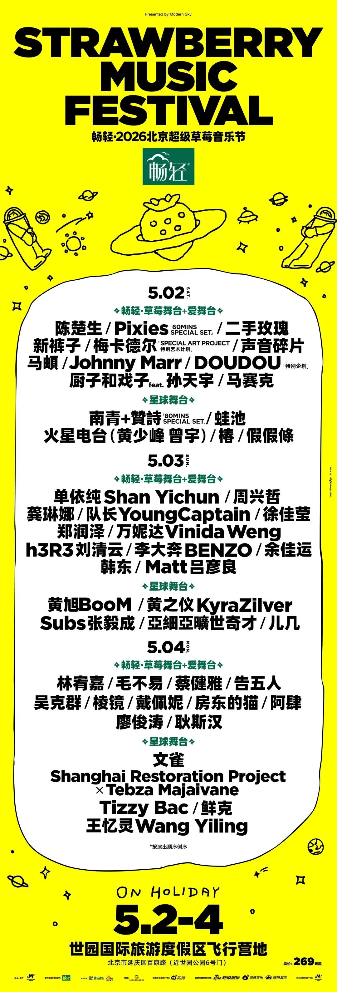 2026北京超级草莓音乐节,多舞台、多现场、多选择,让音乐成为一种可以随时进入的状态。让我们一起在音乐中感受快乐与自由!