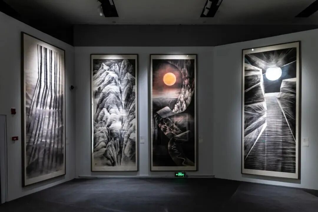 刘墉先生于2025年向中国国家博物馆无偿捐赠其收藏的国画作品《云山松瀑图》《绝壑风生图》,以及采用喷染褶皱皴擦法创作的作品《晨曦》《水月》《书卷》《江山》。本次展览展出了刘墉先生创作的这四幅充满探索张力与现代气息的大尺幅作品。