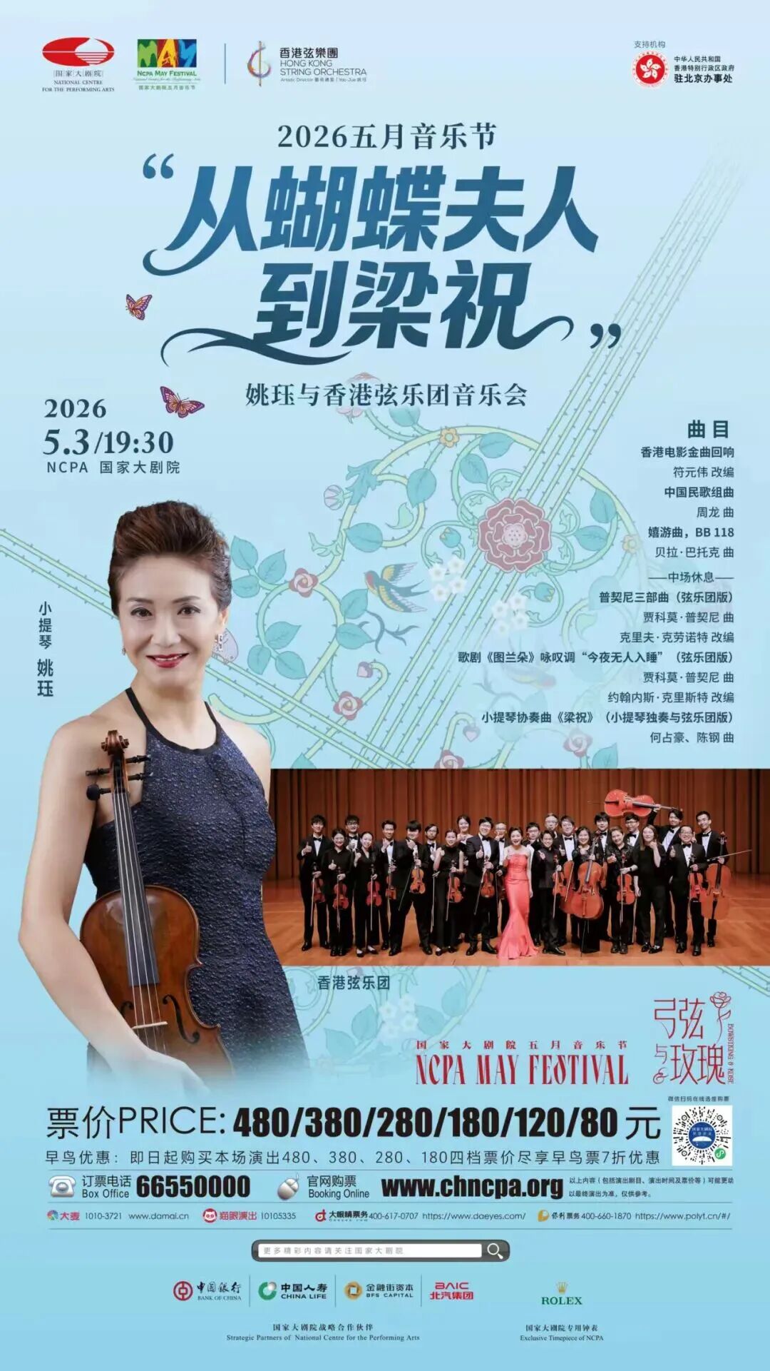 2026五月音乐节“从蝴蝶夫人到梁祝”姚珏与香港弦乐团音乐会