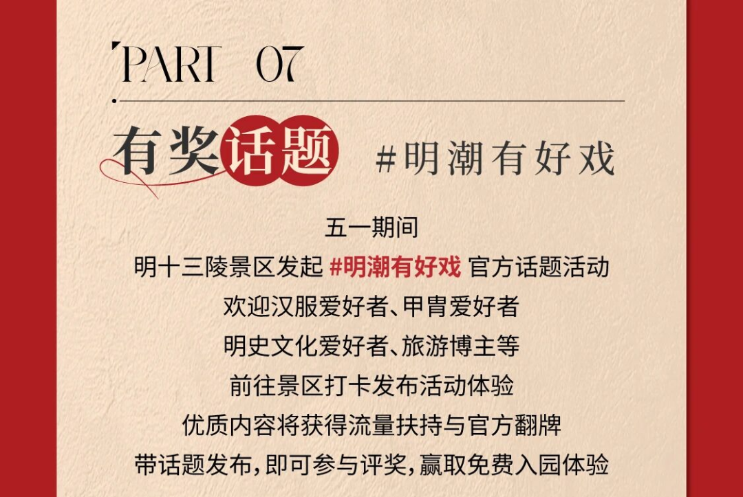从清明“礼乐肇始”至四月“特色主题周”再到“五一活动巅峰”,明十三陵景区以一场持续一个月的“明潮狂欢季·明文化月”主题活动,让明代文化从典籍步入日常。