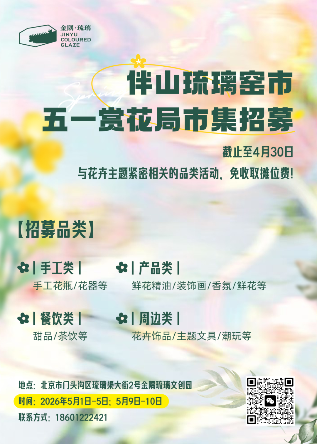 本期伴山琉璃窑市解锁春日新形态打造融合手作、艺术、美食与音乐的疗愈市集,手作饰品、花艺周边、特色美食、小众文创应有尽有。