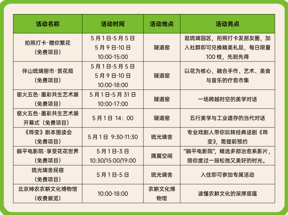 这么多精彩好玩的活动你心动了吗?快带上家人好友,相约京郊,解锁五一欢乐之旅吧~