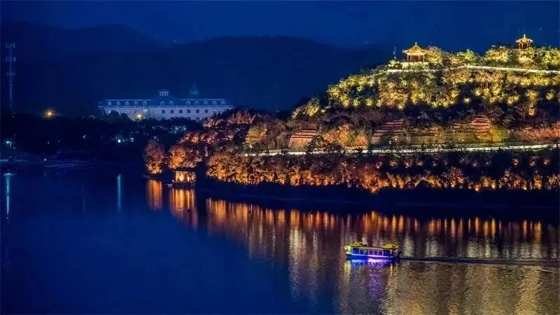 夜幕降临,华灯初上,乘坐游船夜游雁栖湖,别有一番风韵。
