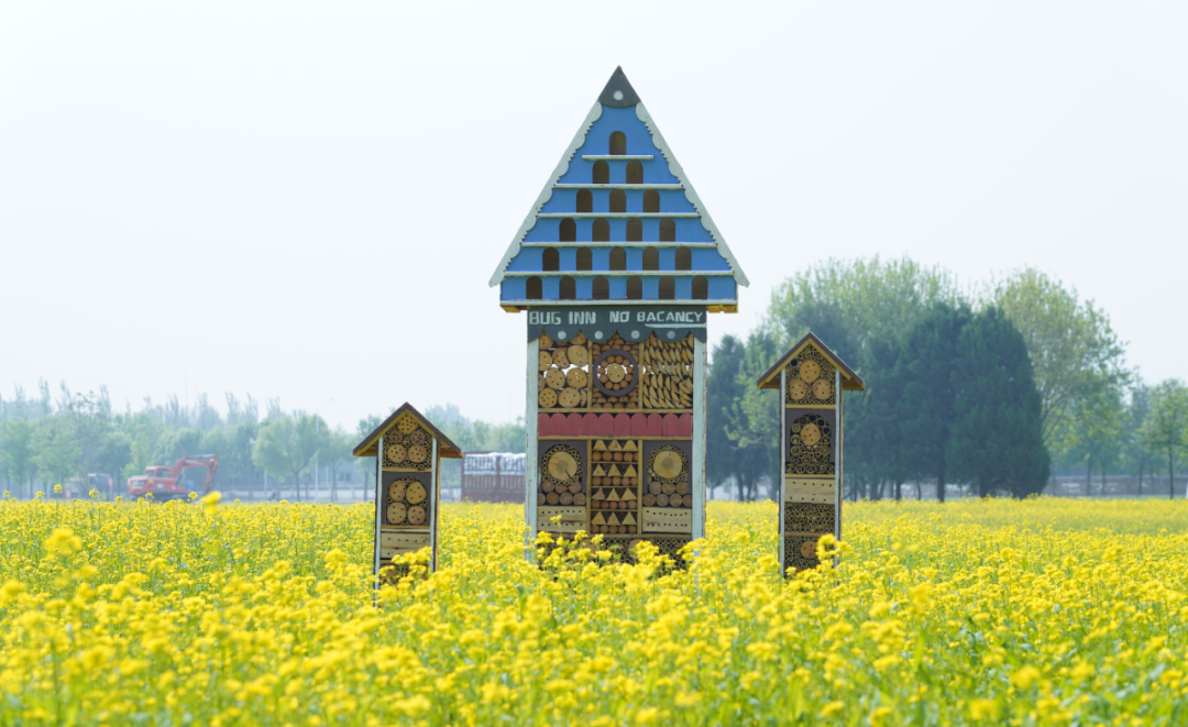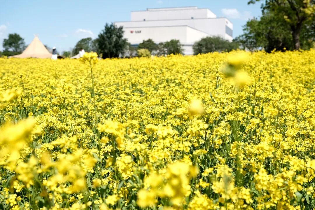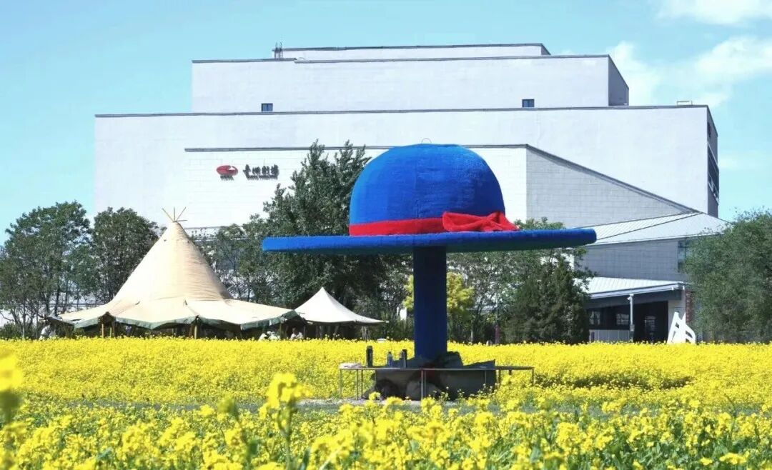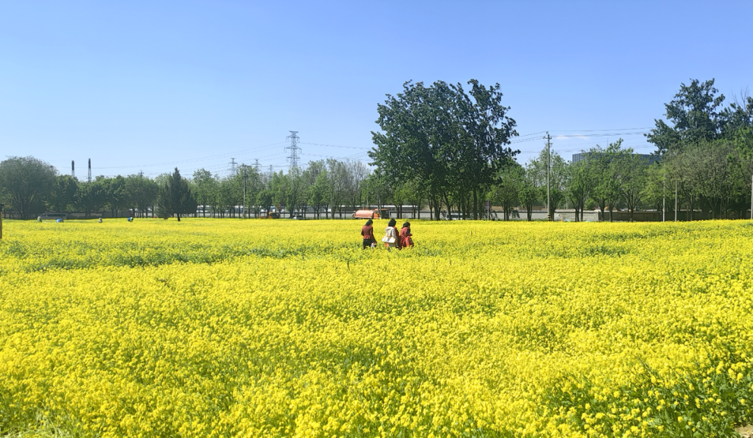 在国家大剧院台湖舞美艺术中心南门外,225亩油菜花花海迎风盛开,犹如金色的人间仙境。