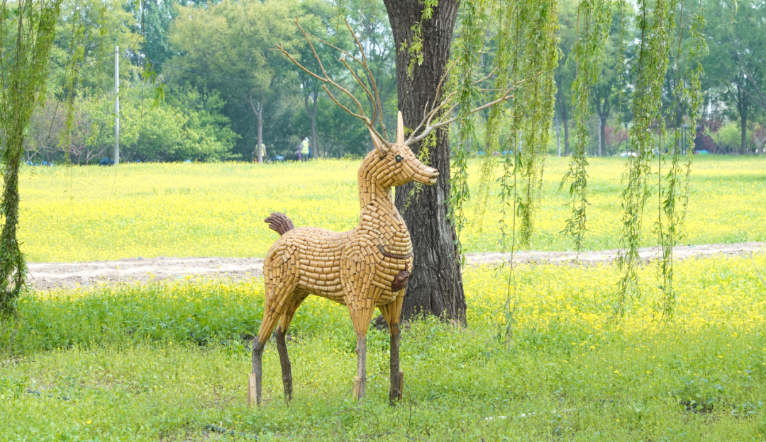 花海舞台、呔呔兽IP大小造型、木质相框、白色相框、音符装置、草帽凉亭、花型座椅、东方红拖拉机、低碳环保工艺品,每一处都是春日氛围感担当。