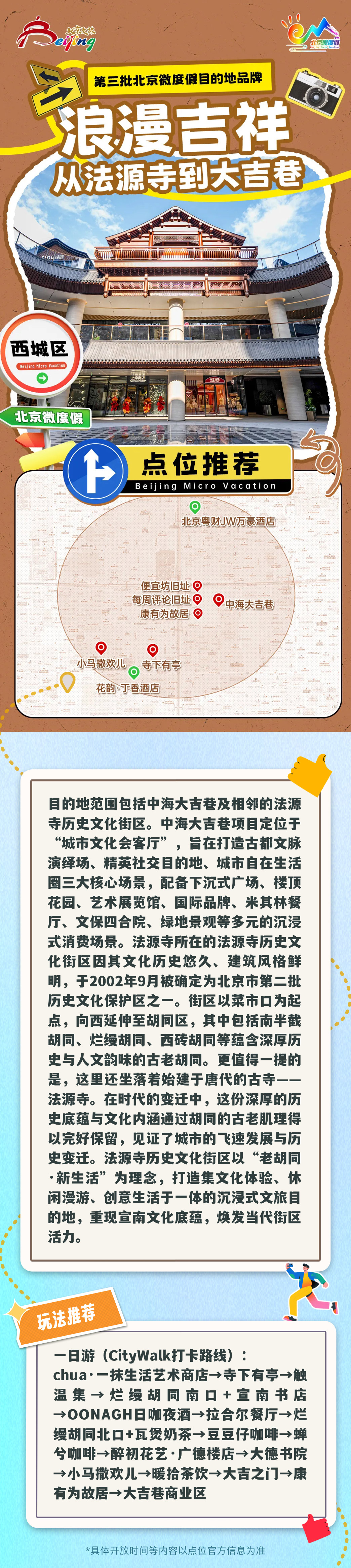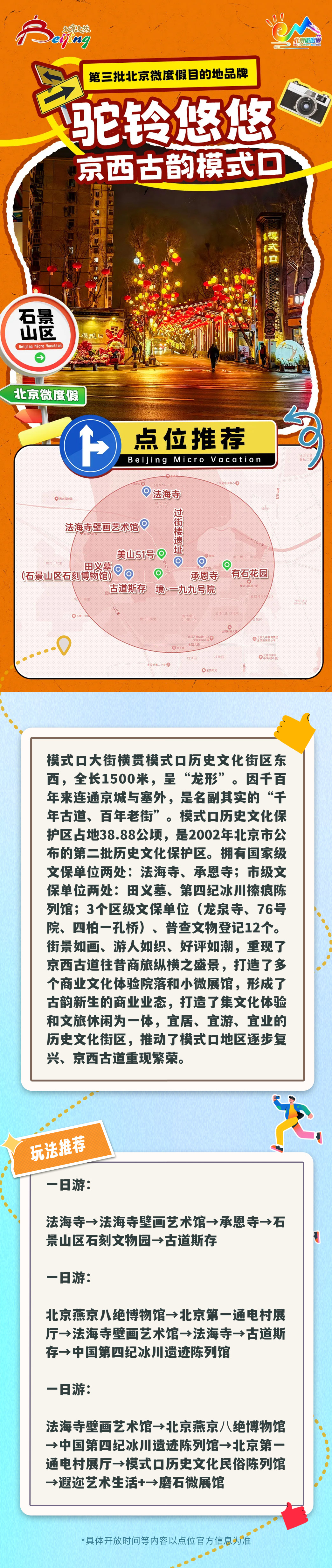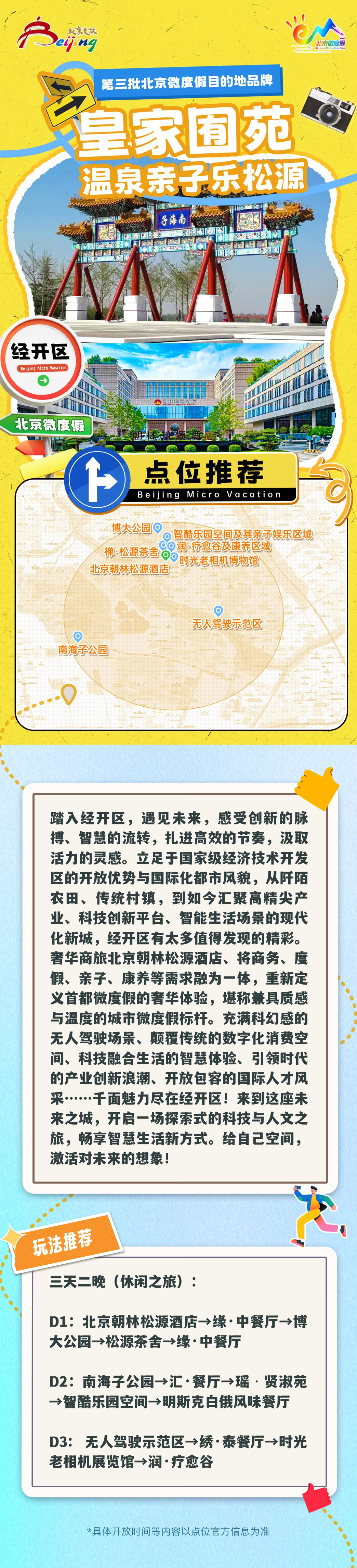 为提前营造春节、元旦的消费氛围,给广大市民游客提供更休闲、更便利、更个性的旅游选择,北京市文化和旅游局推出第三批“北京微度假”目的地品牌。8个“北京微度假”目的地呈现8个旅游片区,拥有文旅商体等多种业态,消费场景多元,各有特色、各有玩法,满足市民游客旅游度假的休闲化、个性化、品质化需求。