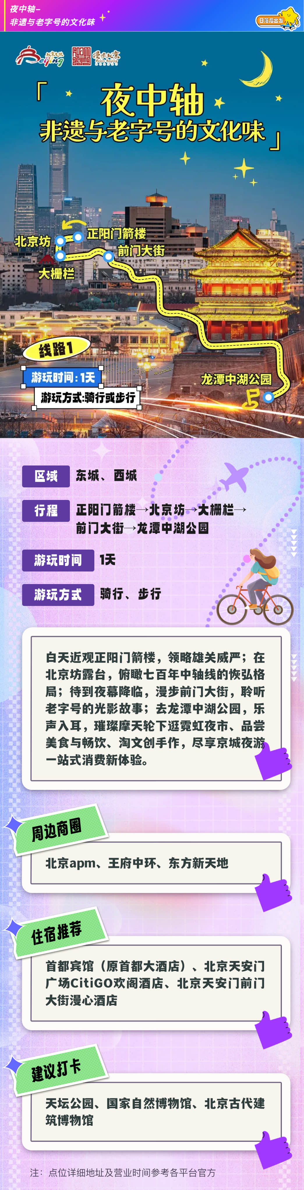 近日,北京市文化和旅游局举办“漫步北京•追光夜游”城市探访活动。探访过程中,北京市文化和旅游局发布了10条“漫步北京-追光夜游”主题游线路,涵盖光影打卡地、夜间文化市集、主题夜游活动等热门场景,全面展现北京夜游消费新地标。抖音生活服务的“Let’s 北京”IP活动以这些热门线路为依托,打造出“可逛、可玩、可吃、可晒”的沉浸式体验。通过“内容种草-场景体验-即时转化”的链路,深化文商旅融合。